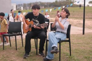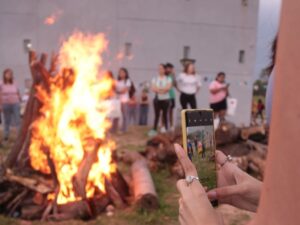 Al atardecer y a pesar de las inclemencias del clima, se encendió un gran fogón como símbolo de construcción colectiva y de comunidad, alrededor del cual continuó el festejo. Antes, estudiantes se animaron a participar del Open Mic, brindando su música e intervención artística.